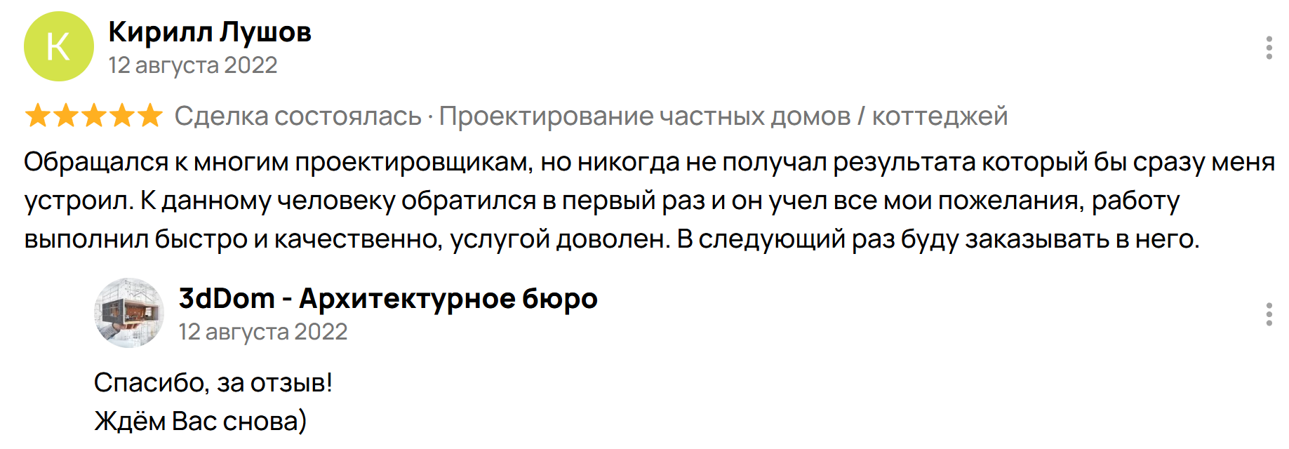 Мы с Вами обсудим все детали Вашего будущего дома: материал стен, кровли, фундамент, количество этажей, количество комнат, другие параметры коттеджа. Вы расскажите каким Вы видите Ваш будущий дом.